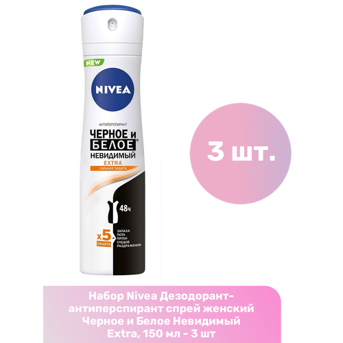 Nivea Дезодорант-антиперспирант спрей женский Черное и Белое Невидимый Extra, 150 мл - 3 шт 103821027795