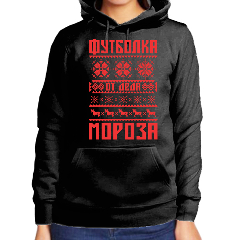 Худи женское черное 52 р-р новогодняя футболка от деда мороза hudizh_futbolka_ot_deda_moroza