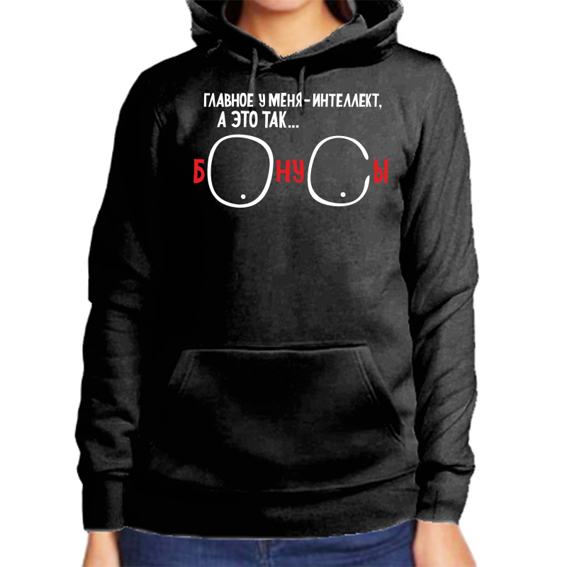 Худи женское черное 50 р-р главное у меня интеллект а это бонусы hudizh_glavnoe_u_menya