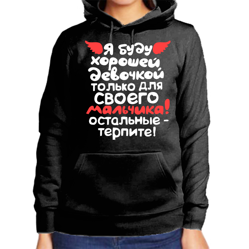Худи женское черное 52 р-р я буду хорошей девочкой только для своего мальчика hudizh_ya_budu_horoshey_devochkoy