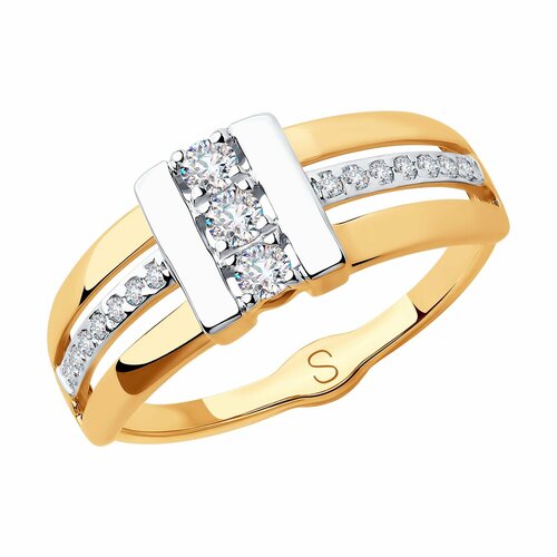 Кольцо Эстет, желтое золото, 585 проба, фианит, размер 17, бесцветный Estet Jewelry