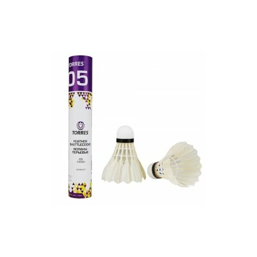 Воланы для бадминтона TORRES 05 (перо/пробка), BD20130, упаковка 12 шт, средняя скорость