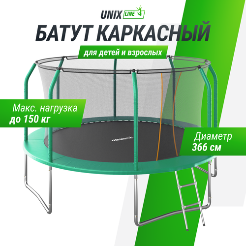 Каркасный батут Unix line 12ft Classic (inside) + аксессуары 366х366х269 см