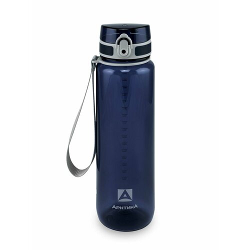 Спортивная бутылка для воды Арктика 720-1000 голубая матовая 1 литр из тритана с ситечком, ремешком, кнопкой и замком от проливаниям