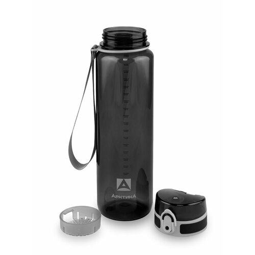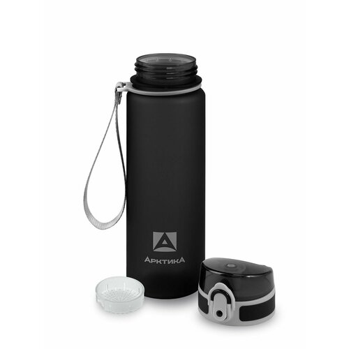 Бутылка для велосипеда 0,5л Арктика 720-500 черная глянцевая из тритана с ситечком, ремешком, кнопкой и замком от проливания