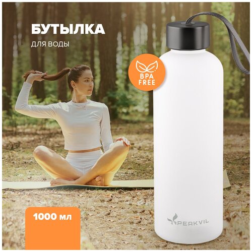 Бутылка для воды для фитнеса для напитков в школу белая 1 литр Peakvil