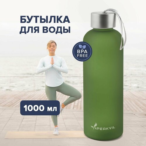 Бутылка для воды 1000 мл Спортивная пластиковая для напитков в школу, для фитнеса Зеленая бутылочка / Peakvil