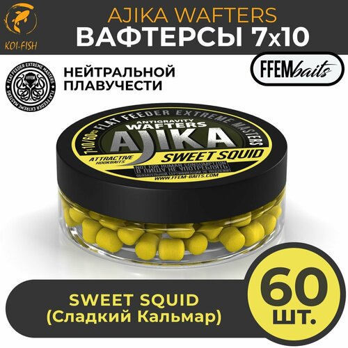 Вафтерсы FFEM JAM WAFTERS SWEET SQUID 7X10 мм сладкий кальмар , банка 50 мл (60 штук) Бойлы насадочные нейтральной плавучести