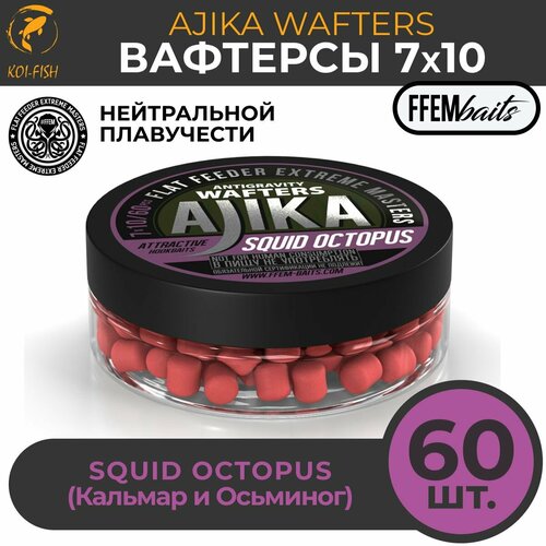 Вафтерсы FFEM JAM WAFTERS SQUID OCTOPUS 7X10 мм кальмар И осьминог , банка 50 мл (60 штук) Бойлы насадочные нейтральной плавучести