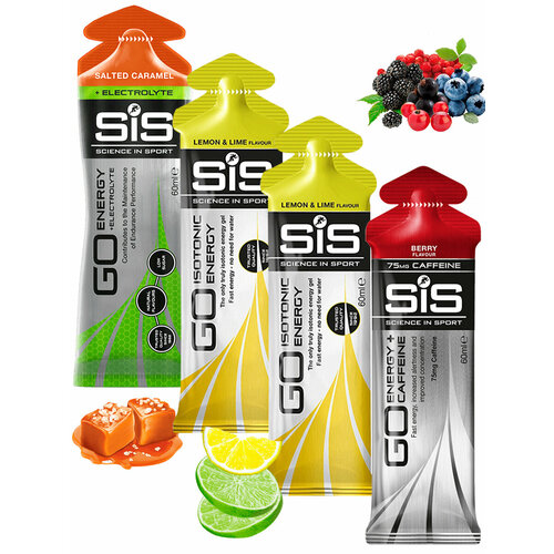 Гель питьевой SCIENCE IN SPORT (SiS) GO Energy MIX-31 4 x 60 мл, Соленая карамель, Ягоды, Лимон-Лайм