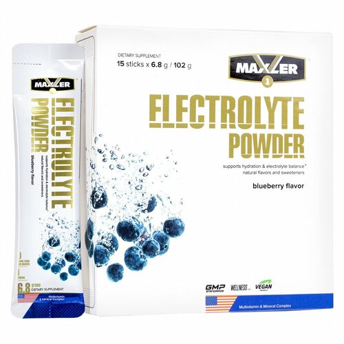 Электролиты Maxler Electrolyte Powder - Черника, 15х6,8 г - Поддержка электролитного баланс - Комплекс микроэлементов