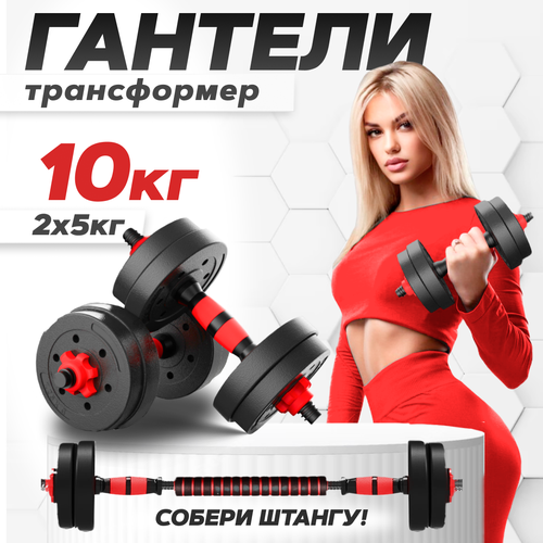 Гантели Ахиллес разборные для фитнеса + переходник на штангу спортивную, общий вес 20 кг, 2 шт. по 10 кг