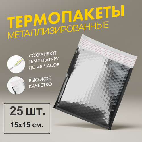 Термоконверт с клеевым клапаном 15х15 см, 25 шт AMIFF. Термопакет для продуктов, медикаментов, анализов, термосумка, сейф-пакет, сумка-холодильник