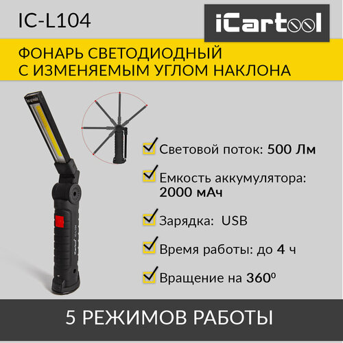 Фонарь светодиодный аккумуляторный с изменяемым углом наклона iCartool IC-L104