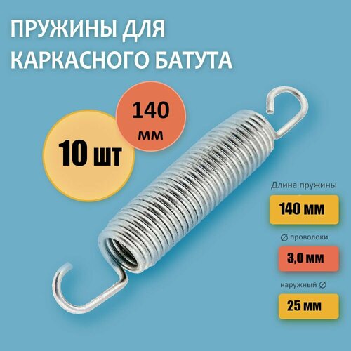 Пружина для каркасного батута усиленная 140 мм, комплект 10 штук