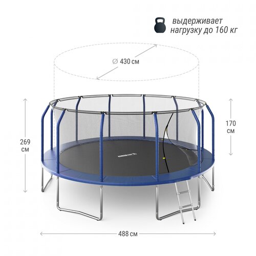 Батут с защитной сеткой Unix Line Supreme Basic 16 ft (Blue)