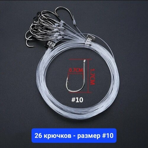 Крючки рыболовные с поводком 26 штук, углеродистая сталь, леска 46 см (размер 10)