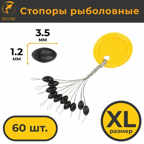 Стопоры рыболовные KOI-FISH 60шт. XL (XL), овальные, черные, 10 по 6 шт.