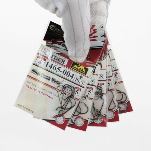 Офсетный крючок LIDER OFFSET SHANK WORM (BLN) №6 (уп.5шт), для рыбалки, рыболовный, для силиконовой приманки, на хищную рыбу - (набор 5 упаковок)