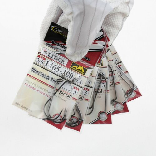 Офсетный крючок LIDER OFFSET SHANK WORM (BLN) №3/0 (уп.3шт), для рыбалки, рыболовный, для силиконовой приманки, на хищную рыбу - (набор 5 упаковок)