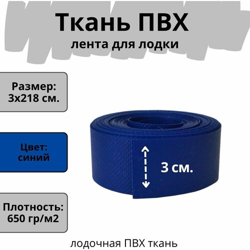 Лодочная ткань ПВХ пригодна для склеивания специализированным полиуретановым клеем, сварки горячим воздухом и ТВЧ.характеристики: Плотность ПВХ ткани 650гр./м².Размер 5х218 см. Температурная стойкость от -50 °С до +70 °С