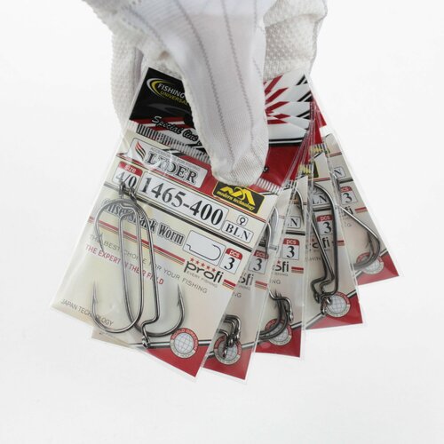 Офсетный крючок LIDER OFFSET SHANK WORM (BLN) №5/0 (уп.3шт), для рыбалки, рыболовный, для силиконовой приманки, на хищную рыбу - (набор 5 упаковок)