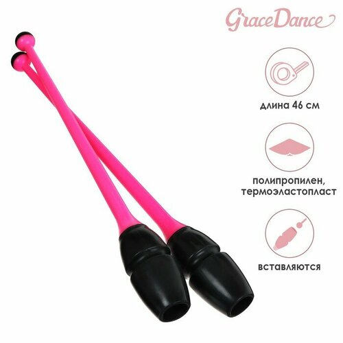 Булавы гимнастические вставляющиеся Grace Dance, 46 см, цвет чёрный/розовый