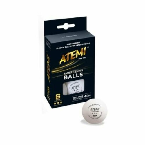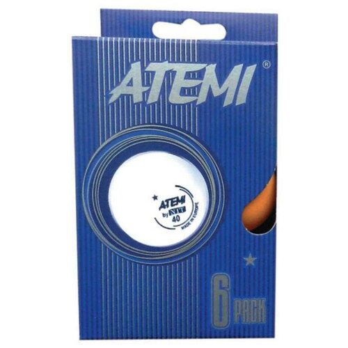 Мяч для настольного тенниса Атеми 1x, пластик, 40+, бел, наб 6 шт, ATB102