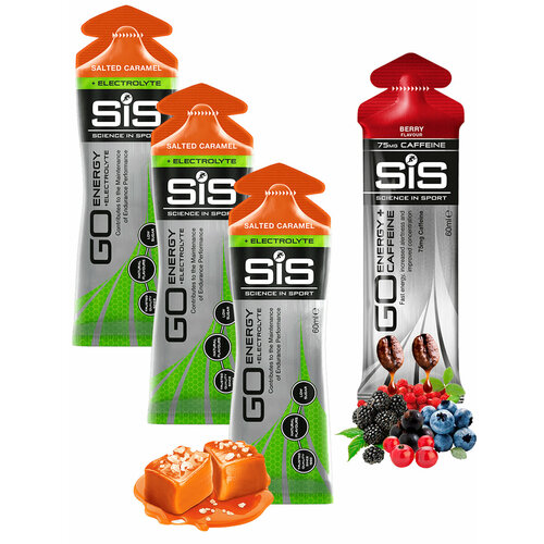 Гель питьевой SCIENCE IN SPORT (SiS) GO Energy MIX-31 4 x 60 мл, Соленая карамель, Ягоды, Яблоко