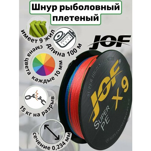 Плетеный шнур рыболовный Jof 100м 0,234мм сечение 9 жил