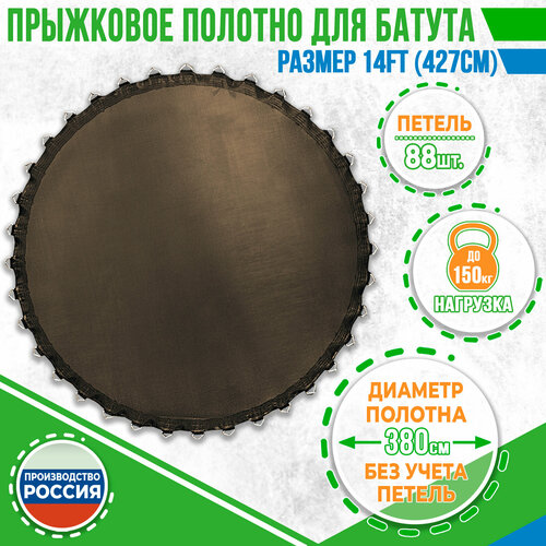 Прыжковое полотно круглое диаметр 380 см, 88 петель для батута 14 футов (427 см по каркасу)