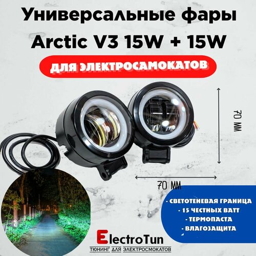 Фары Arctic V3 (круглые, пара) +печатный крепеж Kugoo G-Booster(12-80В ,15W , свето-теневая граница)