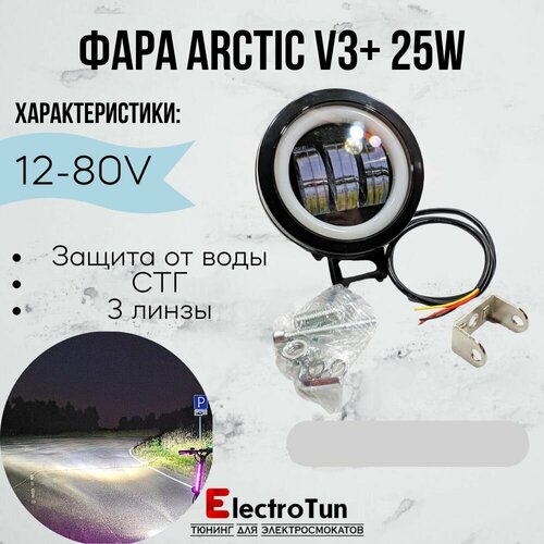 Оригинальная фара Arctic V3+ (круглая) +печатный крепеж Kugoo M4 Pro(12-80В ,25W , свето-теневая граница)