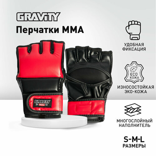 Перчатки ММА Gravity, искусственная кожа, красные, S