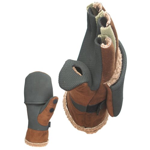 Размер L – ширина ладони: до 9 см. Размер XL ширина ладони: больше 9см примерно до 10см. Перчатки-варежки Norfin AURORA BLACK черного цвета. Варежка достаточно толстая и теплая, на ощупь похожа на дубленку. Верхняя часть варежки может быть отстегнута и закреплена с помощью липучки, тем самым освободив кончики пальцев, к примеру для смены приманки или стрельбы. Ладони усилены дополнительным слоем материала. Подходят для повседневной носки, рыбалки, охоты. Данная модель изготовлена из качественного полиэстера, который обеспечивает оптимальную температуру, а дышащие свойства гарантируют максимальный комфорт. Материал защищает руки от ветра. Отстегивающаяся конструкция превращает варежки в перчатки с наполовину закрытыми пальцами для наибольшего удобства, не теряя при этом свои тепловые качества. Материал – полиэстер.