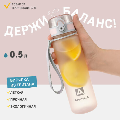 Спортивная бутылка для воды Арктика 720-500 лавандовая матовая 0,5 литров из тритана с ситечком, ремешком, кнопкой и замком от проливания