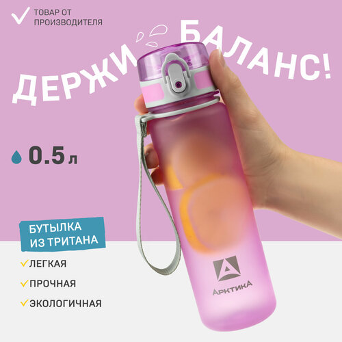 Спортивная бутылка для воды Арктика 720-500 лавандовая матовая 0,5 литров из тритана с ситечком, ремешком, кнопкой и замком от проливания