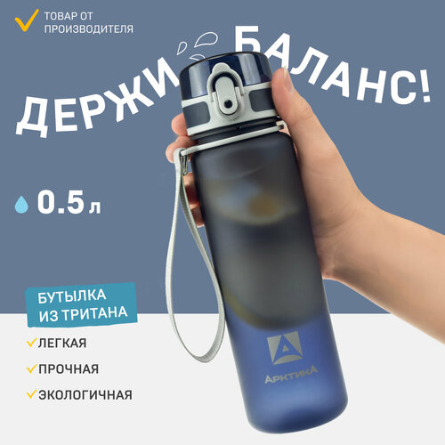 Спортивная бутылка для воды Арктика 720-1000 синяя матовая 1 литр из тритана с ситечком, ремешком, кнопкой и замком от проливаниям