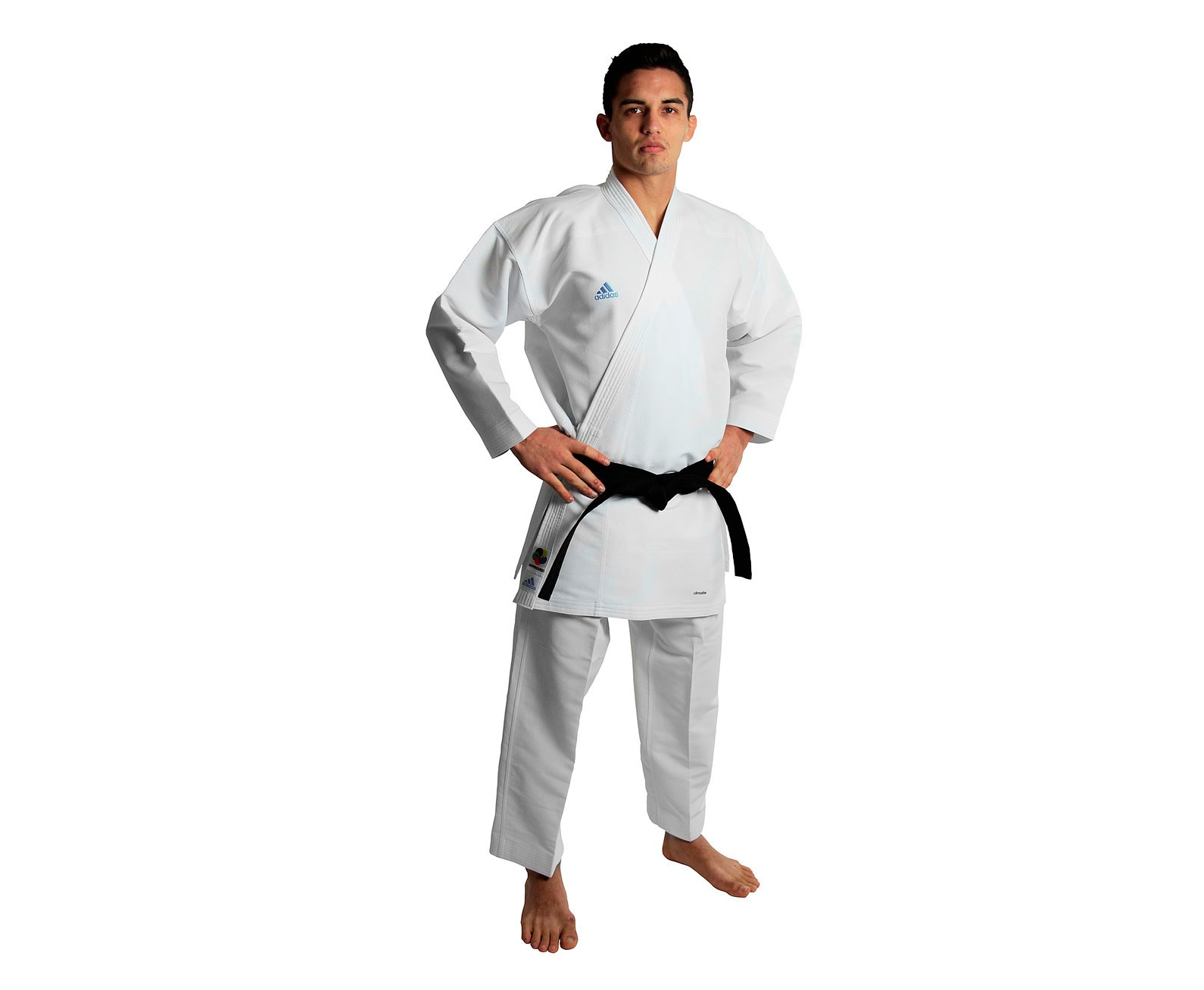 Кимоно для карате AdiLight Primegreen WKF белое с черным логотипом (размер 180 см) K192SK