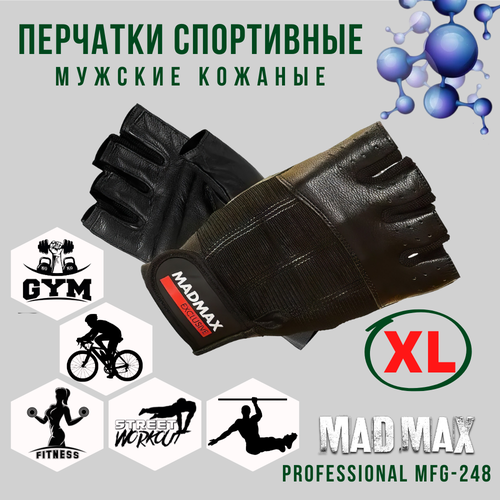 Перчатки мужские для фитнеса кожаные MadMax Clasic MFG-248 Black, Размер XXL - Для тяжелой атлетики, воркаута, кроссфита, велоспорта, из натуральной кожи (арт.2296)