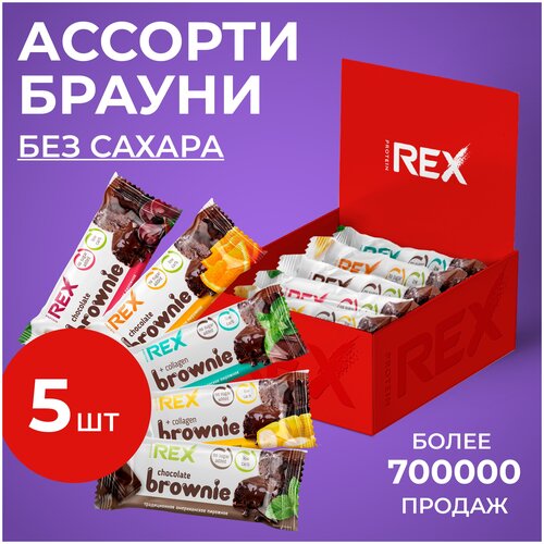 Протеиновые пирожные ProteinRex Брауни Ассорти мини 5 шт х 50 г, 5 вкусов без сахара, батончики Brownie, десерты, ПП сладости для похудения, 190 ккал