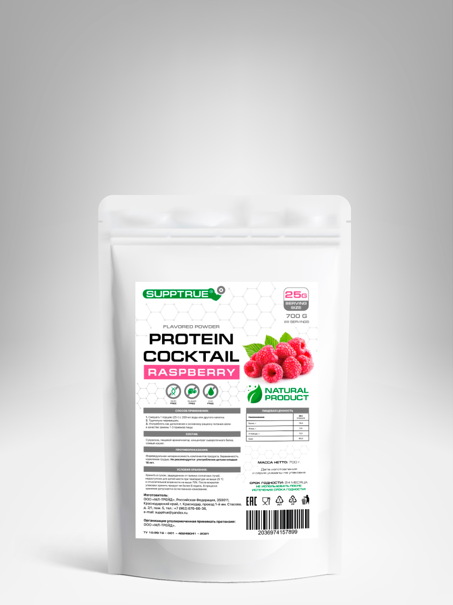 Протеин Supptrue коктейль для похудения со вкусом Малина 700г whey-700-грамм-малина-зеленый