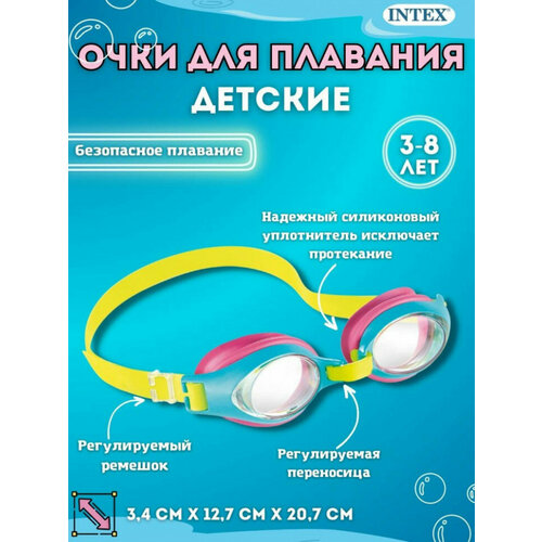 Очки для плавания детские , с антизапотевающим эффектом, INTEX , от 3 до 8 лет , желтые
