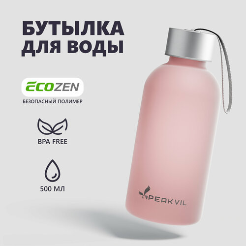 Бутылка для воды пластиковая многоразовая эко бутылочка для напитков в школу Розовая 500мл Peakvil