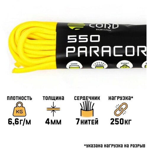 Паракорд 550, нейлон, лимонный, d - 4 мм, 10 м