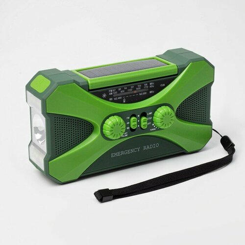 Фонарь кемпинговый аккумуляторный, 5+3 Вт, 10000 мАч, FM, динамо зарядка, солнечная батарея
