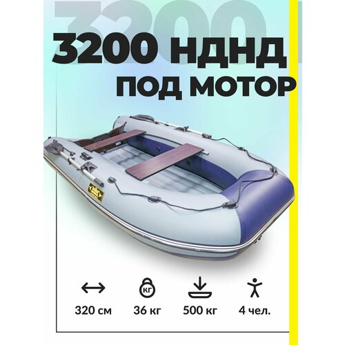 Лодка ПВХ надувная под мотор Муссон 3200 НД для рыбалки с надувным дном и веслами, серый/черный