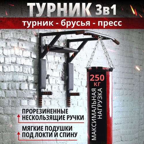 Турник настенный 3 в 1 брусья пресс тренажер для спорта дома, усиленный, нагрузка 300кг профи