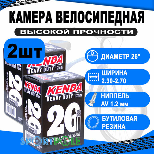Комплект велокамер 2шт 26" авто 5-511335 (новый арт. 5-516360)"широкая" 2,40-2,75 (58/67-559) усиленная толщ. стенки 1,2мм (20) KENDA
