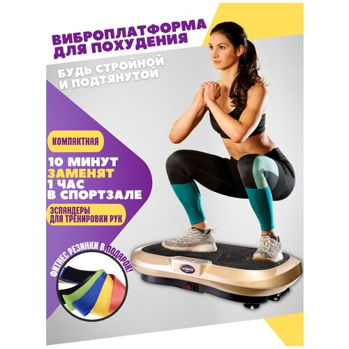 Виброплатформа для похудения с эспандерами + в подарок фитнес-резинки VF-M503 Gold